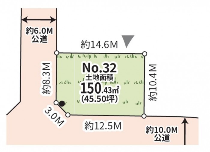 - 北西側 公道6.0m 間口約8.3m