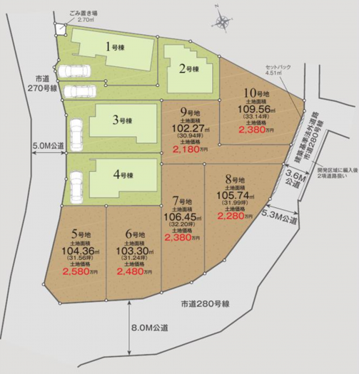 - 南側 公道6m 間口約6.6m