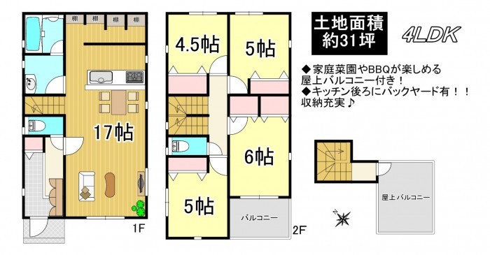 ◇家庭菜園やBBQが楽しめる屋上バルコニー付き!
